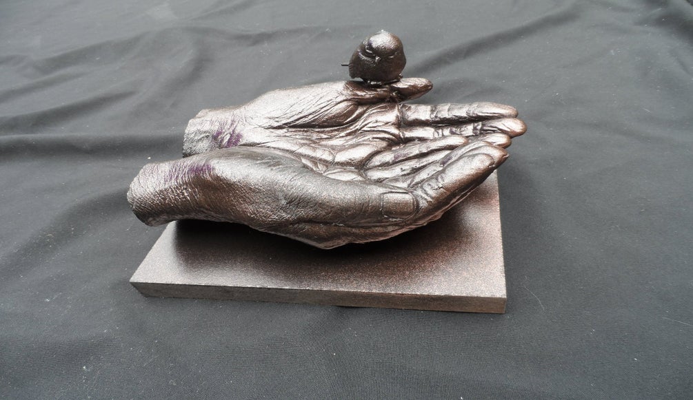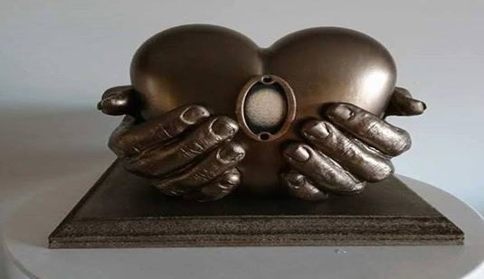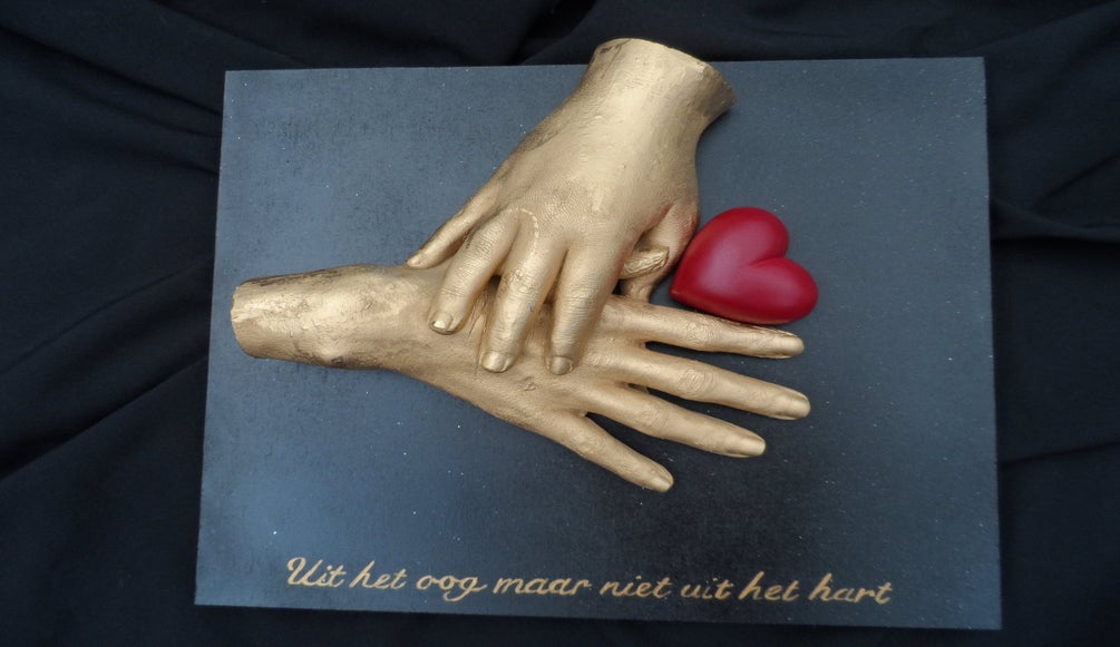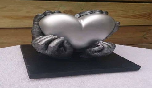 Urn Ster,hart of vlinder met twee handen liggend 145,-